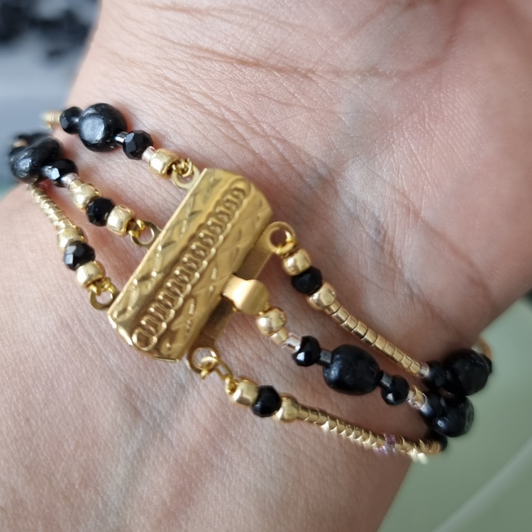 کپشن مهم: تو هم اگه میخای زیورهات چند ردیفه ات ، ردیفی توی دستت بیاسته و روی هم نیوفته باید از این قفلها استفاده کنی دستبند سه ردیفه سنگ عقیق سلیمانی به همراه منجوق میوکی و کریستال یرای بیا . . #penstoreiran #زیورآلات#اکسسوری#دستبند#پابند#گوشواره#گردنبند#منجوق#کریستال#شیک#مدرن#ترند#آرازیور#زیور_پلیمری #ArazivarrJewelry#ArazivarrStyle#ClayByArazivarr