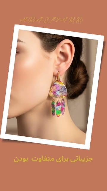 گوشوارهای که نور رو از خودش عبور میده و رنگهاش توی حرکت میرقصن. دو دستسازه هیچوقت کاملاً شبیه هم نمیشن و این یعنی فقط یه جفت از این گوشواره ساخته شده.