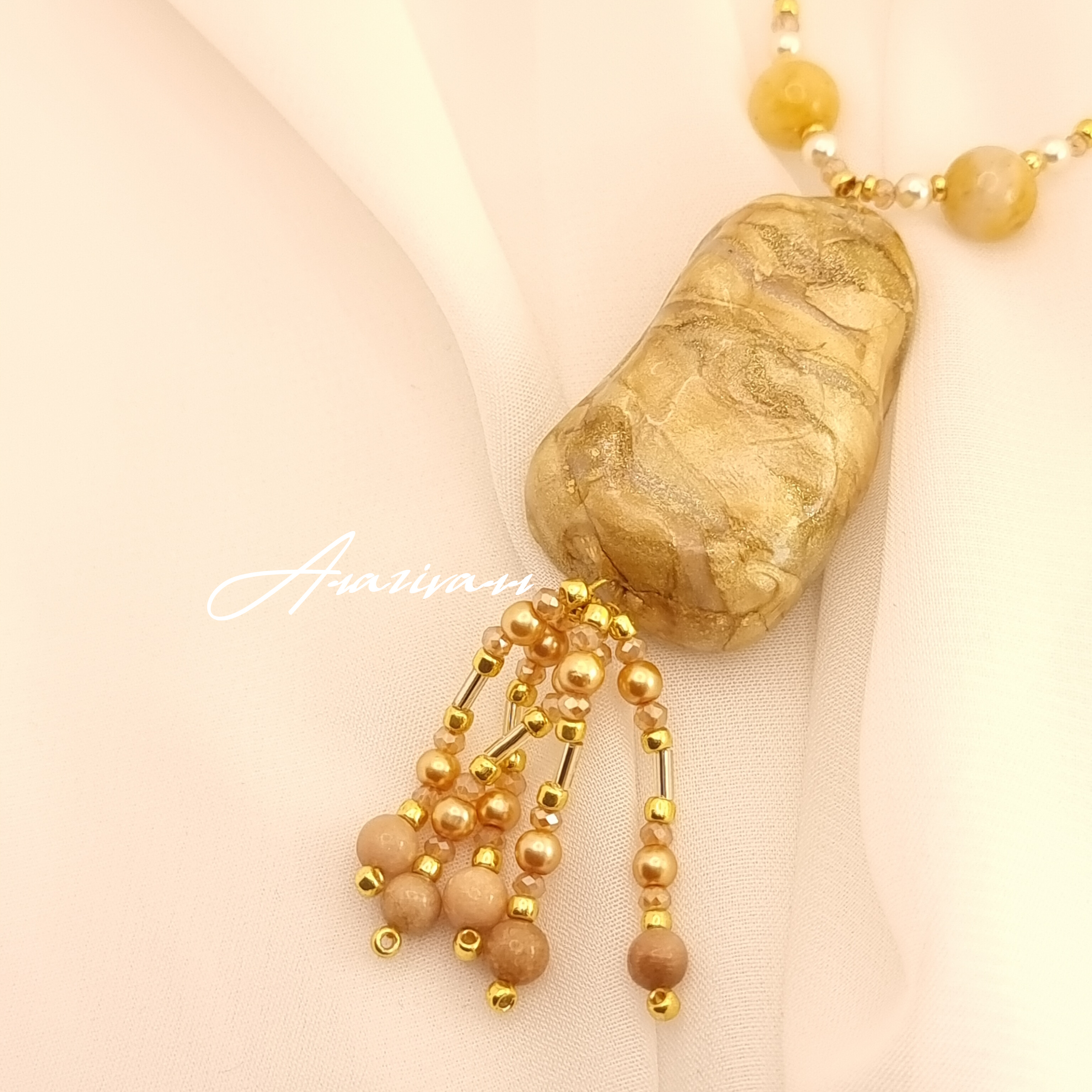 جنس: متریال استدلر + سنگ سیترین + منجوق میوکی رنگ ثابت + کریستال چک