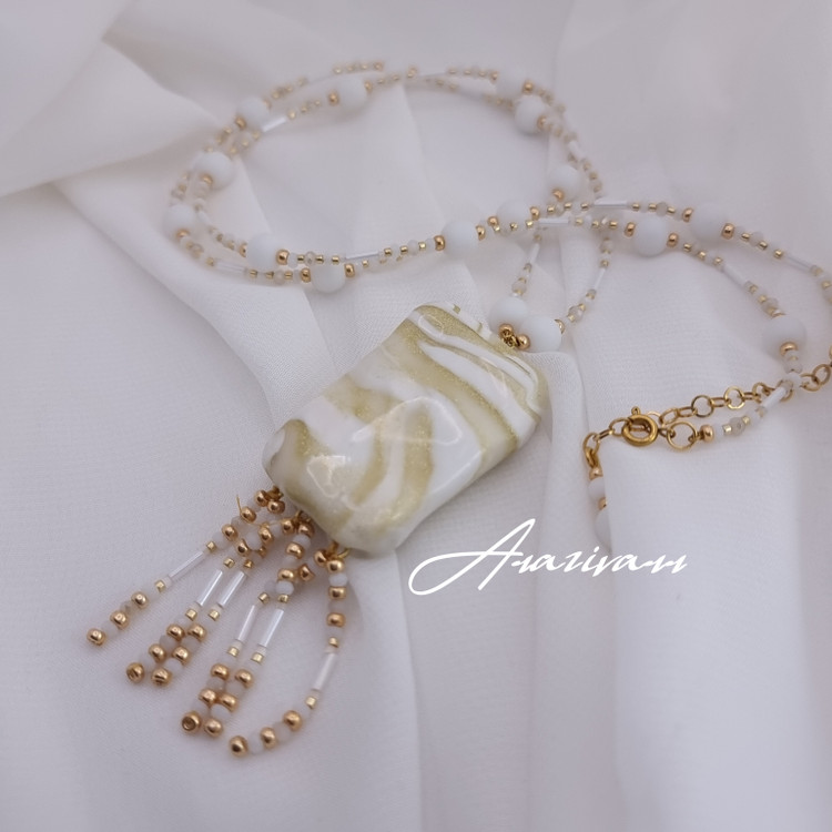 گردنبند رولباسی ساخته شده از متریال استدلر ، منجوق میوکی ، کریستال چک تک نسخه در تمام دنیا