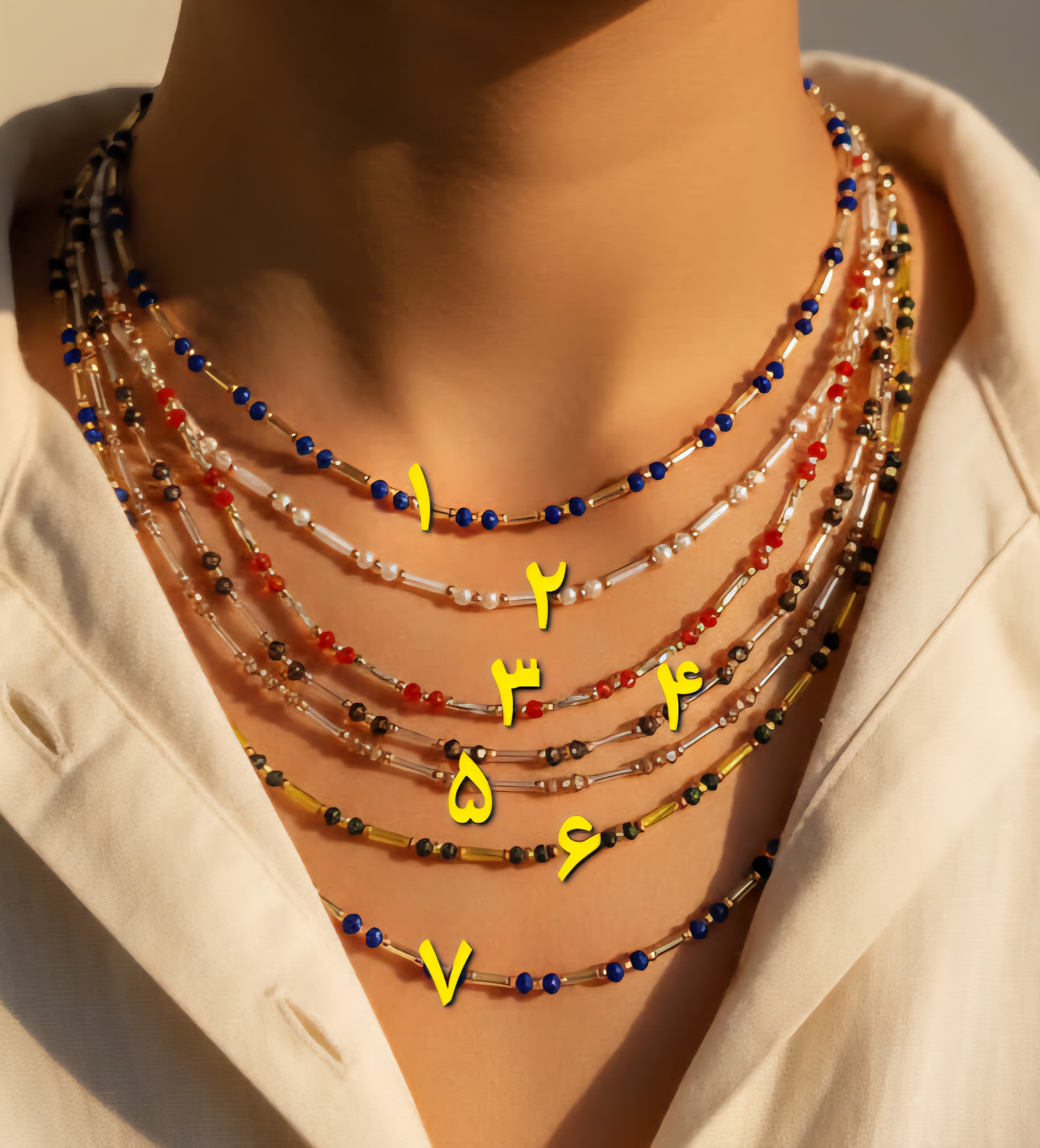 گردنبند دستساز از منجوقهای میوکی ژاپنی و کریستال چک